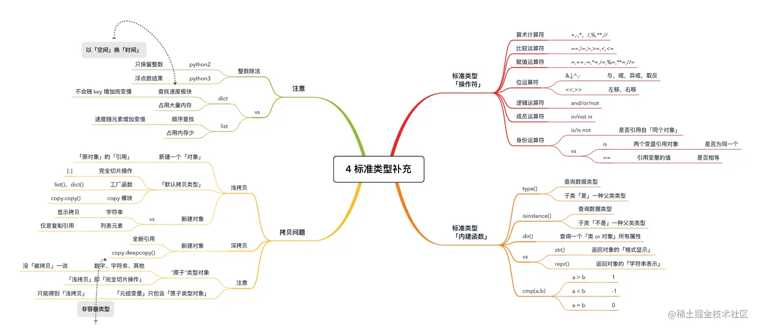 学习Python少不了对标注类型的了解,这张图整理了标注类型操作符、拷贝、内建函数、整数除法的说明。