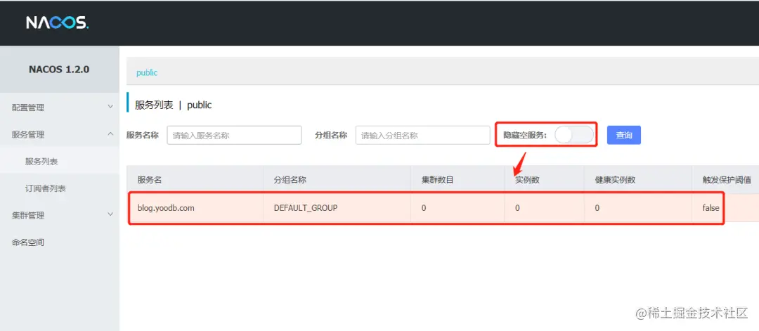 curl -X GET "http://127.0.0.1:8848/nacos/v1/ns/instance/list?serviceName=blog.yoodb.com"