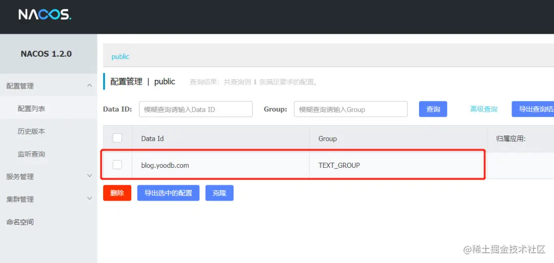 curl -X GET "http://127.0.0.1:8848/nacos/v1/cs/configs?dataId=blog.yoodb.com&group=TEXT_GROUP"