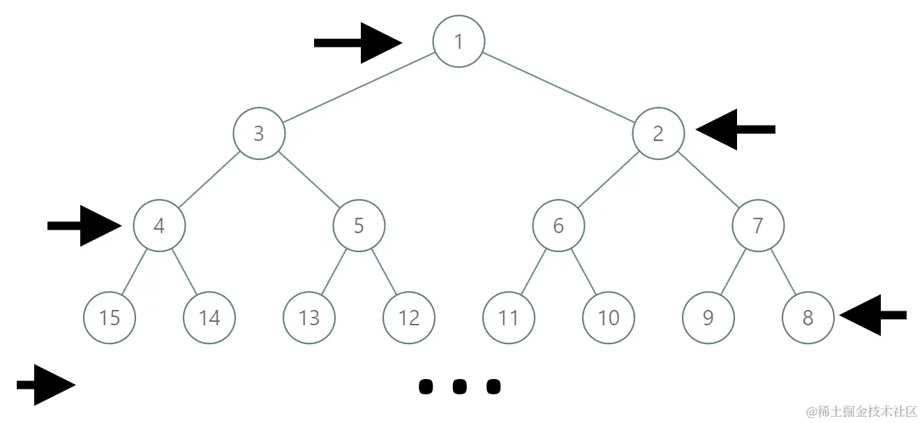 - 正常子节点是当前节点值2n,2n+1