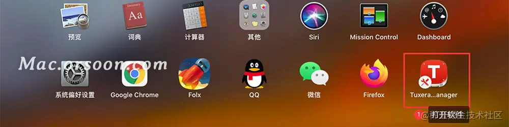 启动Mac后,打开Launchpad界面,直接单击Tuxera NTFS for Mac图标,便可进入Tuxera Disk Manager界面。