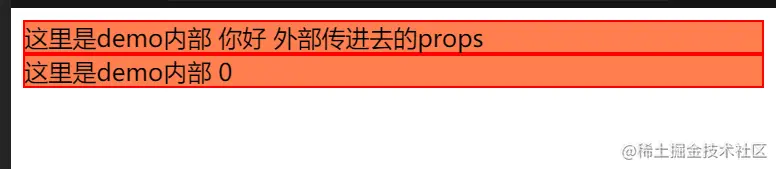 点击组件demo的按钮, 外部的n+1, 更新的n用 :message再传进去内部组件,于是内部组件的n也同步更新