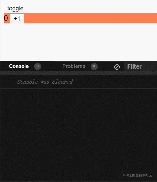 可以看到当结果是3后,点击两次toggle, 出现的结果是0, 由此证明是新生成的组件