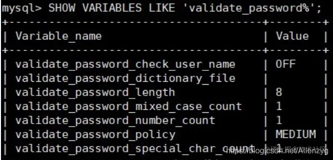 如果想要查看MySQL完整的初始密码规则,登陆后执行以下命令: