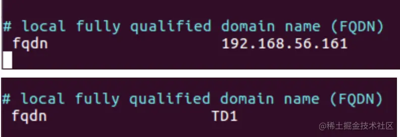 在修改fqdn参数之后,我们要在/etc/hosts文件中(或DNS服务)添加上TD1和对外的ip地址。