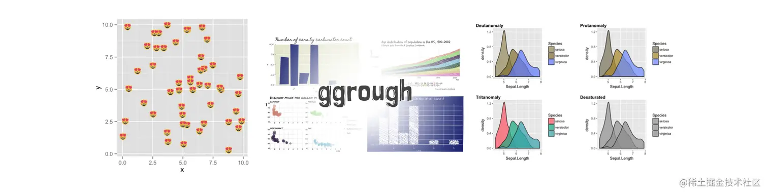 - ggrough 使用javascript库,可将ggplot2图转换为粗糙/概略图表。