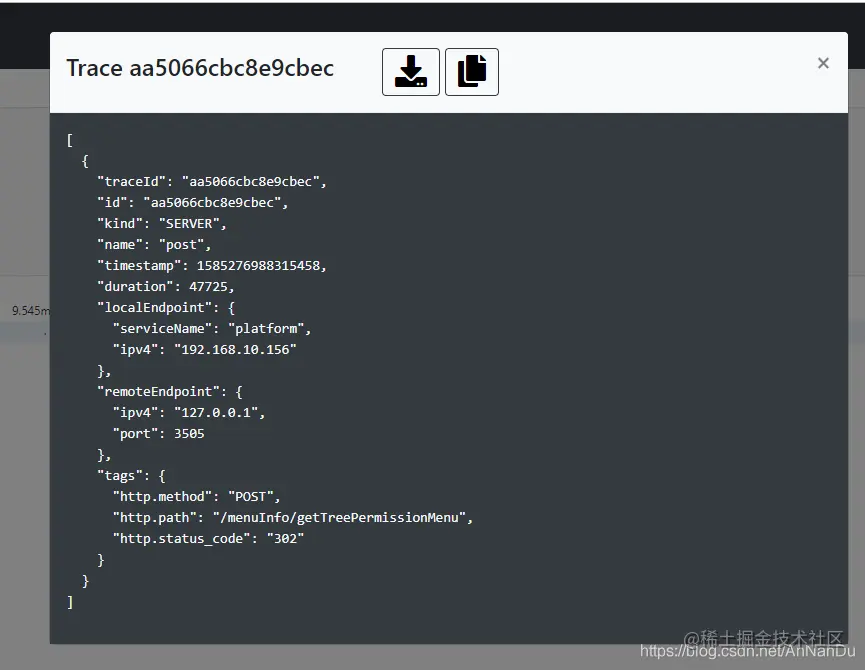 json数据,可以在业务代码将追踪到的信息写入到数据源