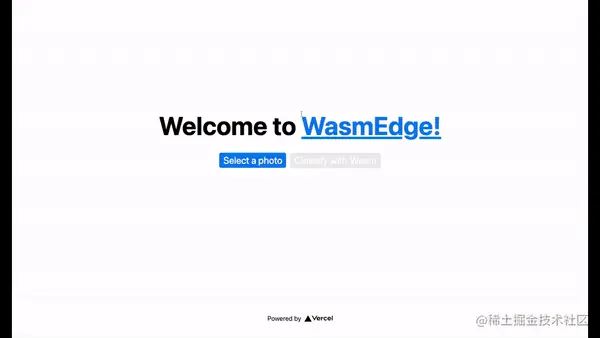 api/hello.js 文件符合 Vercel serverless 规范。 它加载 WasmEdge runtime,在 WasmEdge 中启动已编译的 WebAssembly 程序,并通过 STDIN传递上传的图像数据。注意 api/hello.js 运行由 api/pre.sh 产生的编译过的 classify.so 文件,以达到更好的性能。