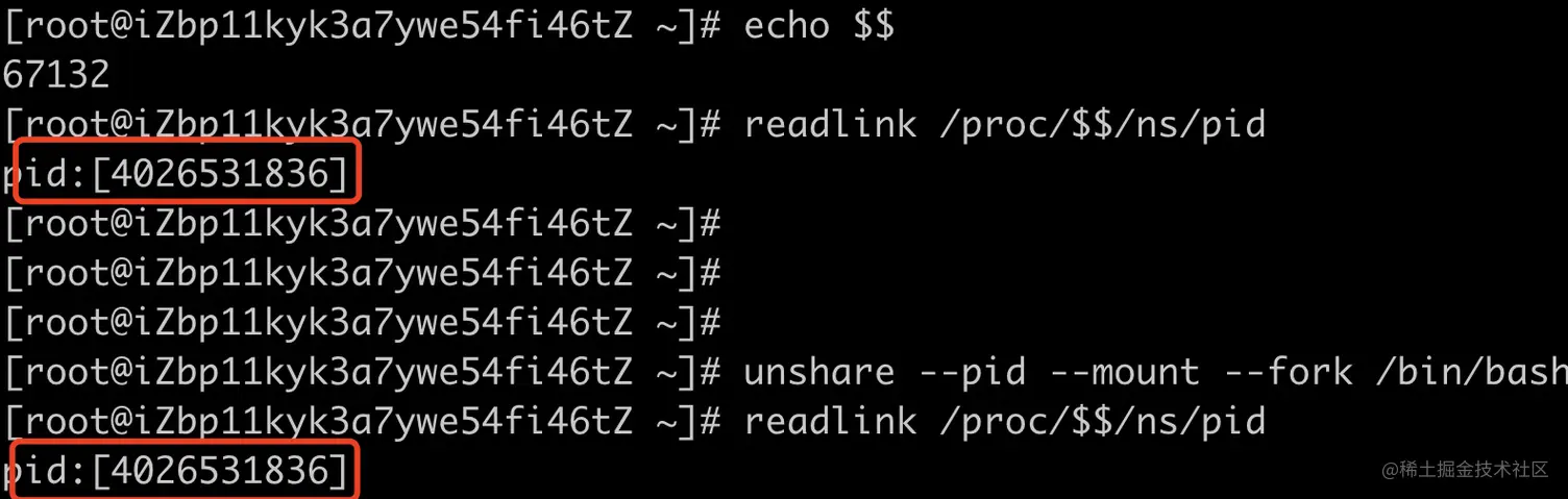 上图中新生成的PID Namespace的Id并没有发生改变,我们看到在新创建的PID Namespace也可以看到其他的进程的运行情况,显然这个和我们说的隔离是不一致的,接下来我们看下原因是什么: