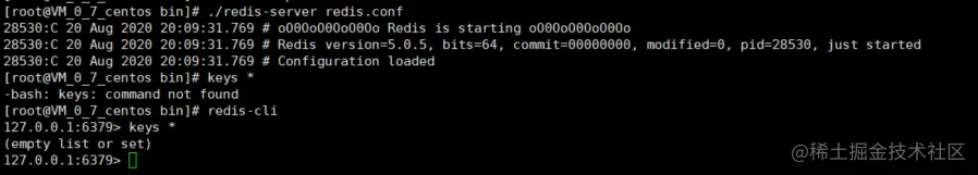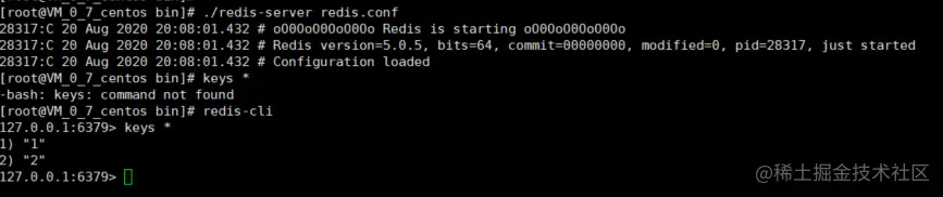 6、启动redis在进行查看,发现存储的数据已经不存在了。