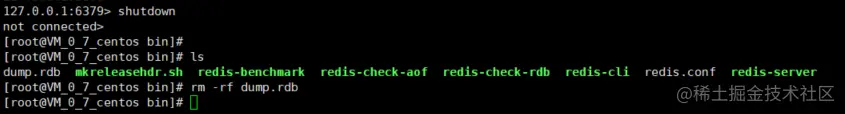 5、执行shutdown命令关掉服务,并把dump文件删除