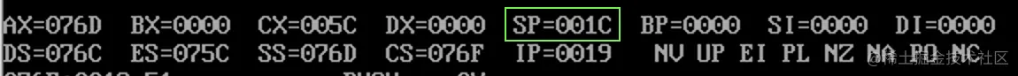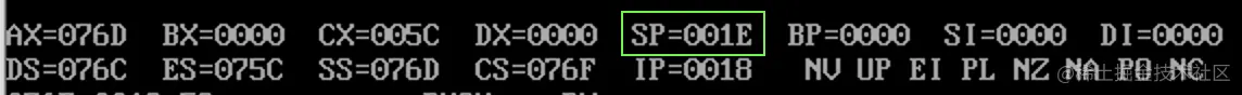此时,栈顶寄存器 sp 变成 001C (001E - 2)。