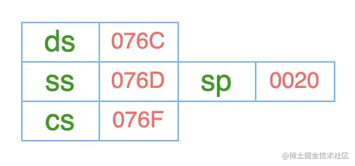 此时,我们还没有为数据段寄存器 ds、栈段寄存器ss赋值,因此里面的值是没有意义的。