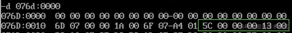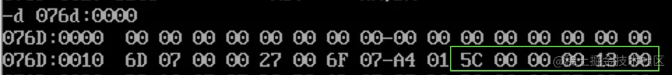 在代码的开头,我们放置了 6 个字节的数据段空间,内容是 5 个字符,加上一个 0。