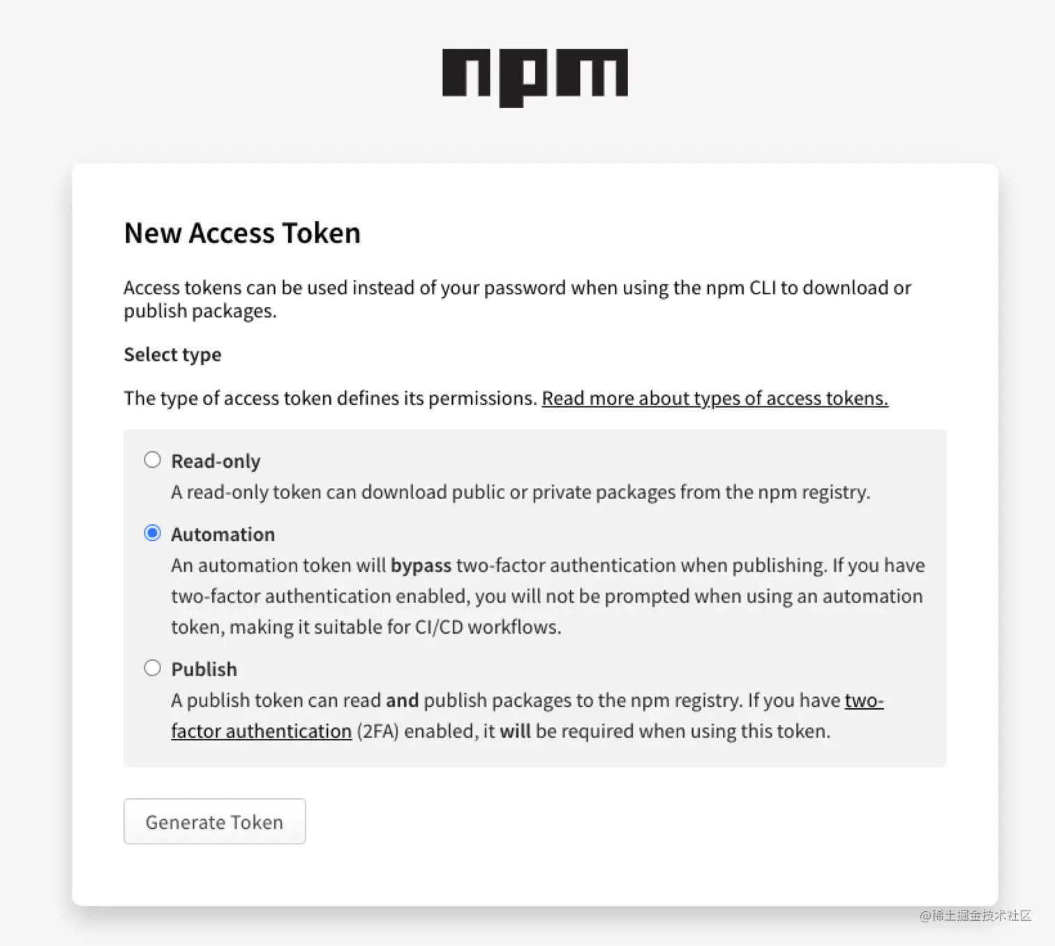 当我们想使用github actions将文件上传到npm库时,则需要在github配置一下npm access tokens。