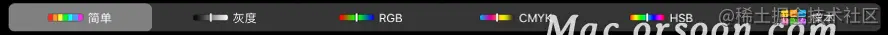 在允许更改文本或对象颜色的 App 中,您可以使用触控栏选择颜色、阴影或模式(如 RGB 或 HSB)。