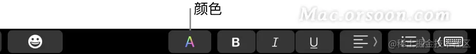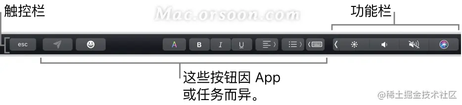 **【提示】**在部分 App 中,您可以自定触控栏以添加最常执行任务的按钮。