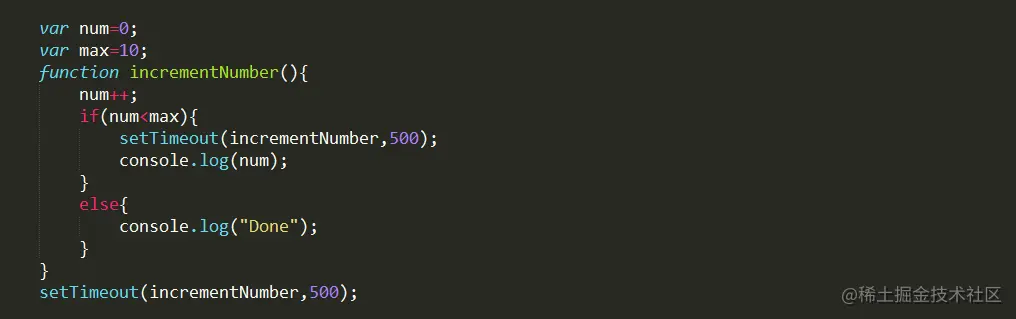 setTimeout(startCount,1000); //setTimeout是超时调用,使用递归模拟间歇调用