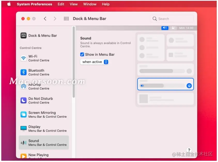 在 macOS Big Sur 的菜单栏中自定义控制中心