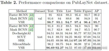 VSR 在三个开源数据集 ArticleRegions,PubLayNet,DocBank 上取得了最优结果。
