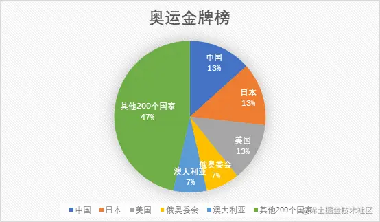举一个常见的例子,我们对用户显示数学饼状图是需要数据支撑的,例如下面这张东京奥运会金牌榜: