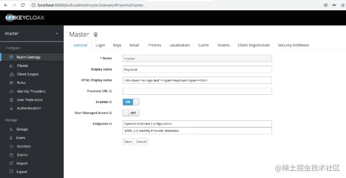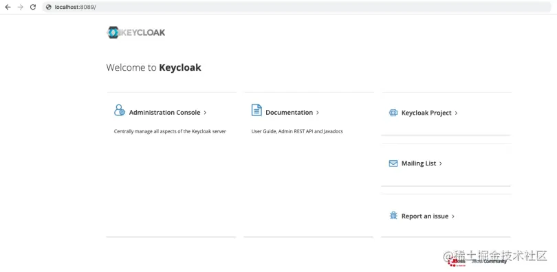 然后你就可以通过打开浏览器并输入 Keycloak实例,打开一个浏览器,输入以下网址http://localhost:8089