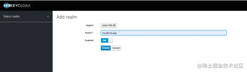 - 为你将用于管理应用程序安全的_境界_提供一个名称(请记住,境界_名称是区分大小写的)。在我们的例子中,我们将使用_my-demo-app这个名字。