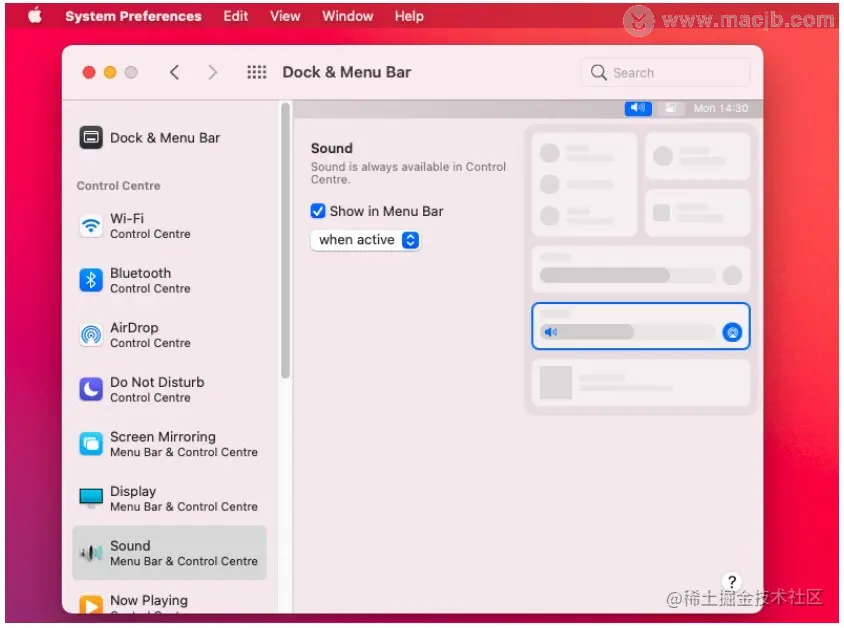 在 macOS Big Sur 的菜单栏中自定义控制中心