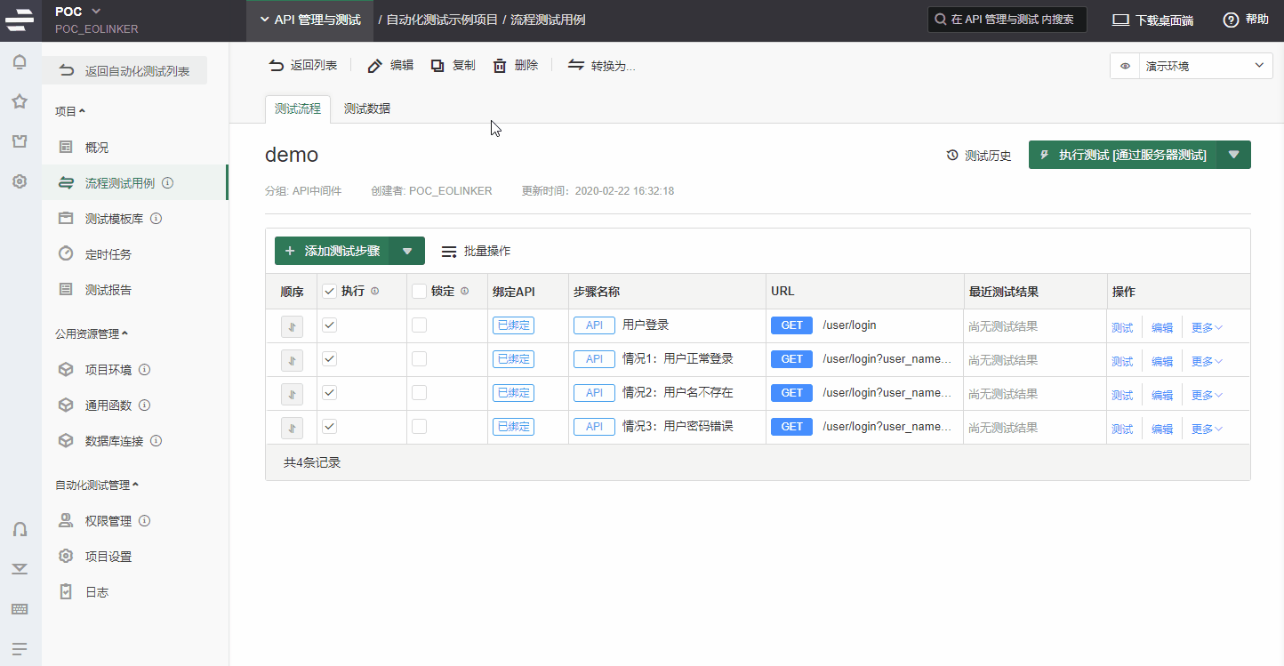 或者可以在测试用例详情页通过批量操作来更新多个API测试步骤。