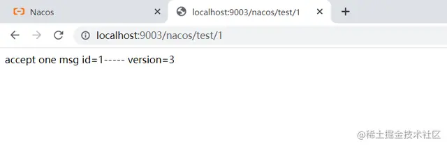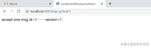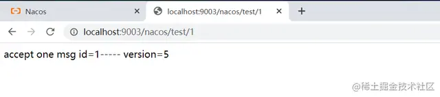 上面配置完毕,启动nacos-config-share这个项目,访问:http://localhost:9003/nacos/test/1,结果如下图: