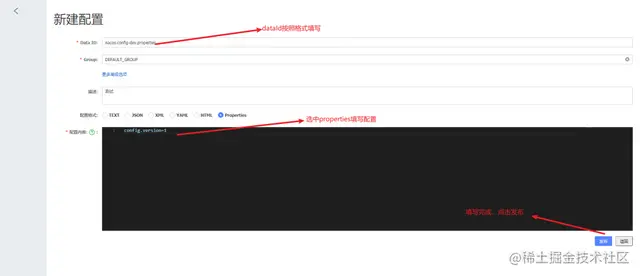 注意:DataId一定要带有后缀properties或者yml