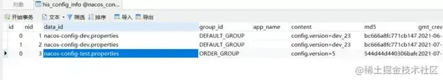 如何验证是否持久化呢?很简单,只需要创建一个配置,然后在his_config_info表中查看下是否存在即可,如下图: