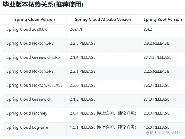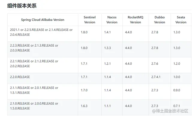 注意:Spring Boot、Spring Cloud、Spring Cloud Alibaba的版本可不是随便选择的,官网明确规定了各个版本的适配:github.com/alibaba/spr…