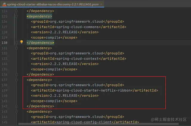 其实Nacos集成了Ribbon,何以见得呢?打开spring-cloud-starter-alibaba-nacos-discovery的依赖一看便知,如下图: