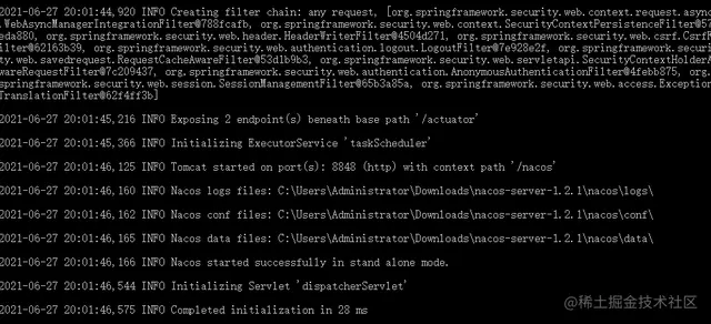 由于作者本地是windows,直接双击startup.cmd启动项目,出现以下界面则启动完成: