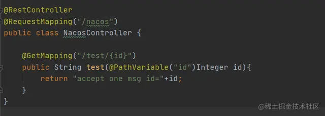 nacos-provider作为服务提供者注册到nacos中,肯定需要提供个服务来供消费者(nacos-consumer)调用,下面是随便写的一个接口: