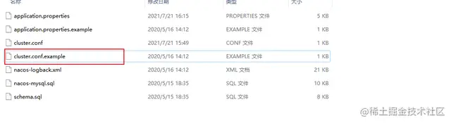 配置文件同样在Nacos-server中的conf目录下,如下图: