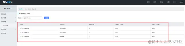 启动成功,访问任意一个端口的Nacos服务,在集群管理->节点列表中将会看到自己搭建的三个节点,如下图: