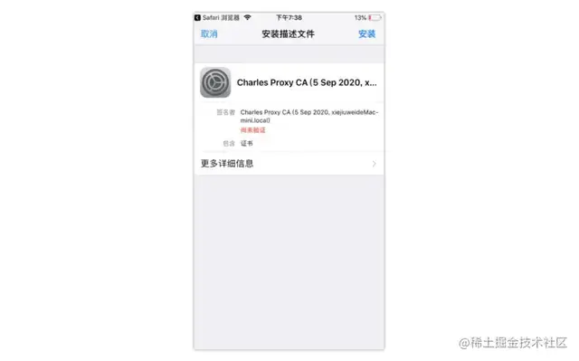 这里为什么是 iPhone 抓包配置,主要是因为 Android 抓包配置太麻烦了。然后 iPhone 就只需要简单的安装证书就可以了。