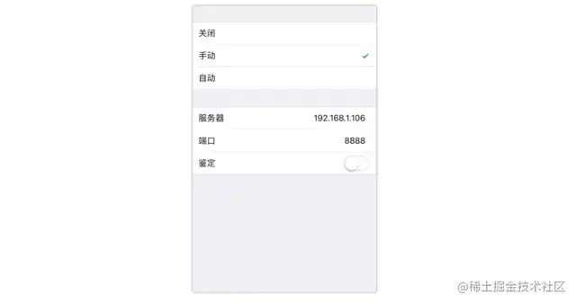 配置代理,在 设置 - 高级 - 代理配置中。配置为 Charles 代理。接下来介绍主要功能: