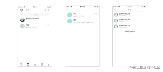 蔚来的消息入口是放在 IM 中的一个会话,和理想的设计不太一样,消息点击进入之后 分为 互动 和 通知,对互动消息列表的抓包结果如下。