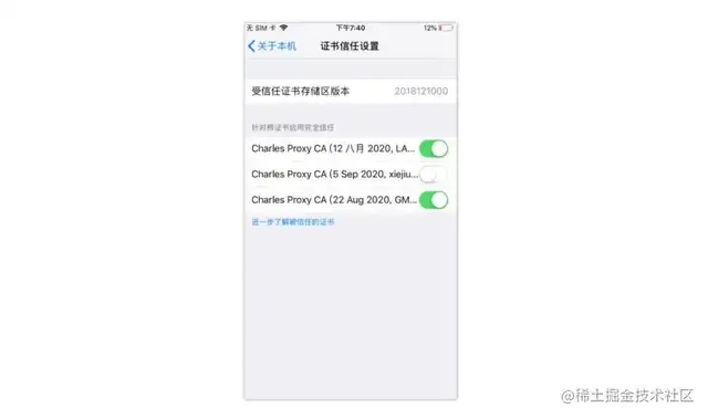 设置 - 通用 - 关于本机 - 证书信任设置 - 勾选安装的证书
