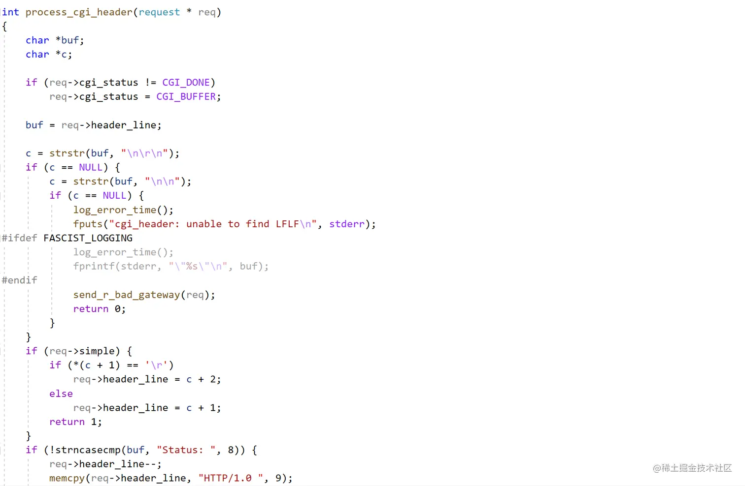 这一段是 BOA 的源码,我发现当他判断 cgi 文件中没有\n\r\n 或者\n\n 这样的字符串的时候,就会报错 502。