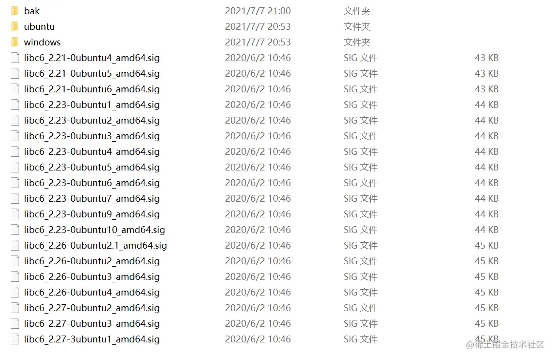 而标准库的 sig 文件也有现成制作好的,在github.com/push0ebp/si…中下载,并且把文件导入到 IDA/sig/pc 中就能够使用,我这里为了快速找到我们导入的 sig 文件,将该文件夹中原有的文件都放到了 bak 目录下,把我们猜测可能会用到的符号文件放置到目录下