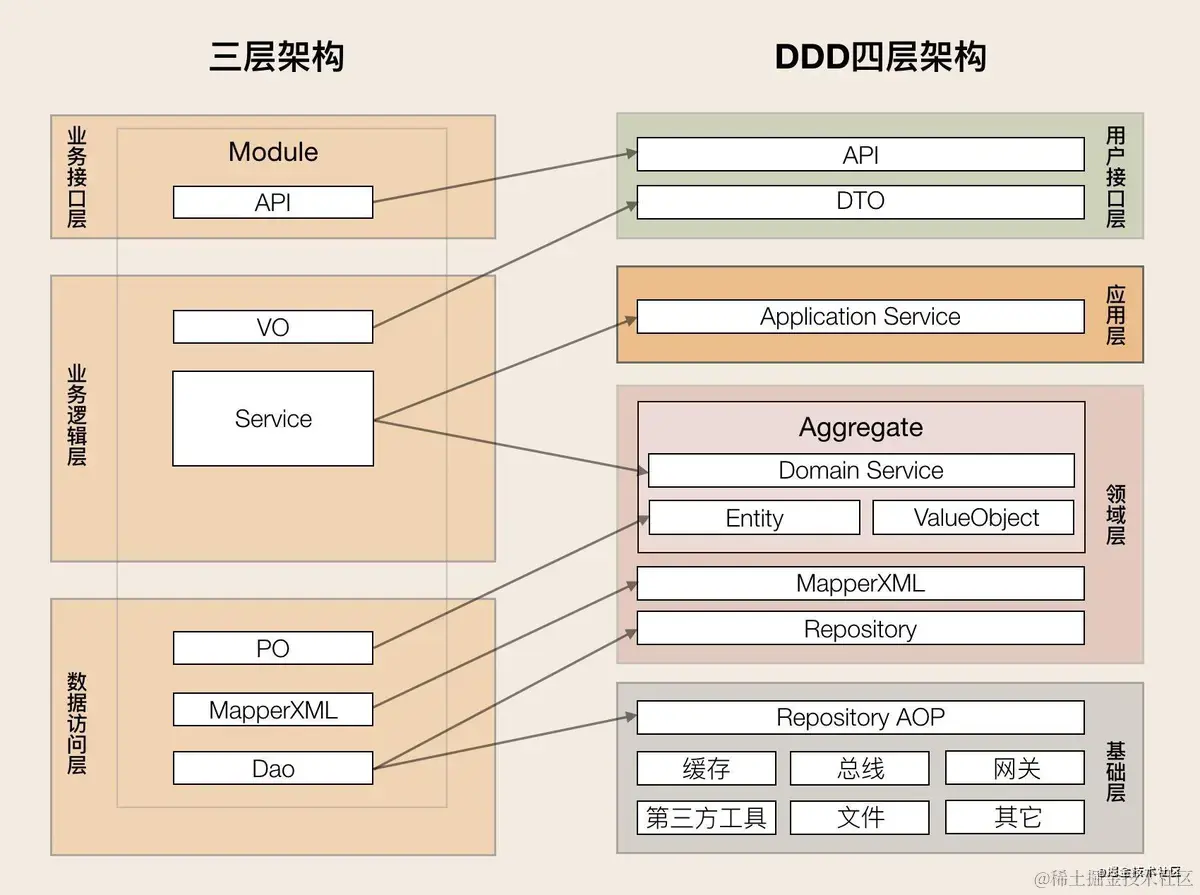 这里先简单介绍一下三层模型到DDD对应的一个变化。