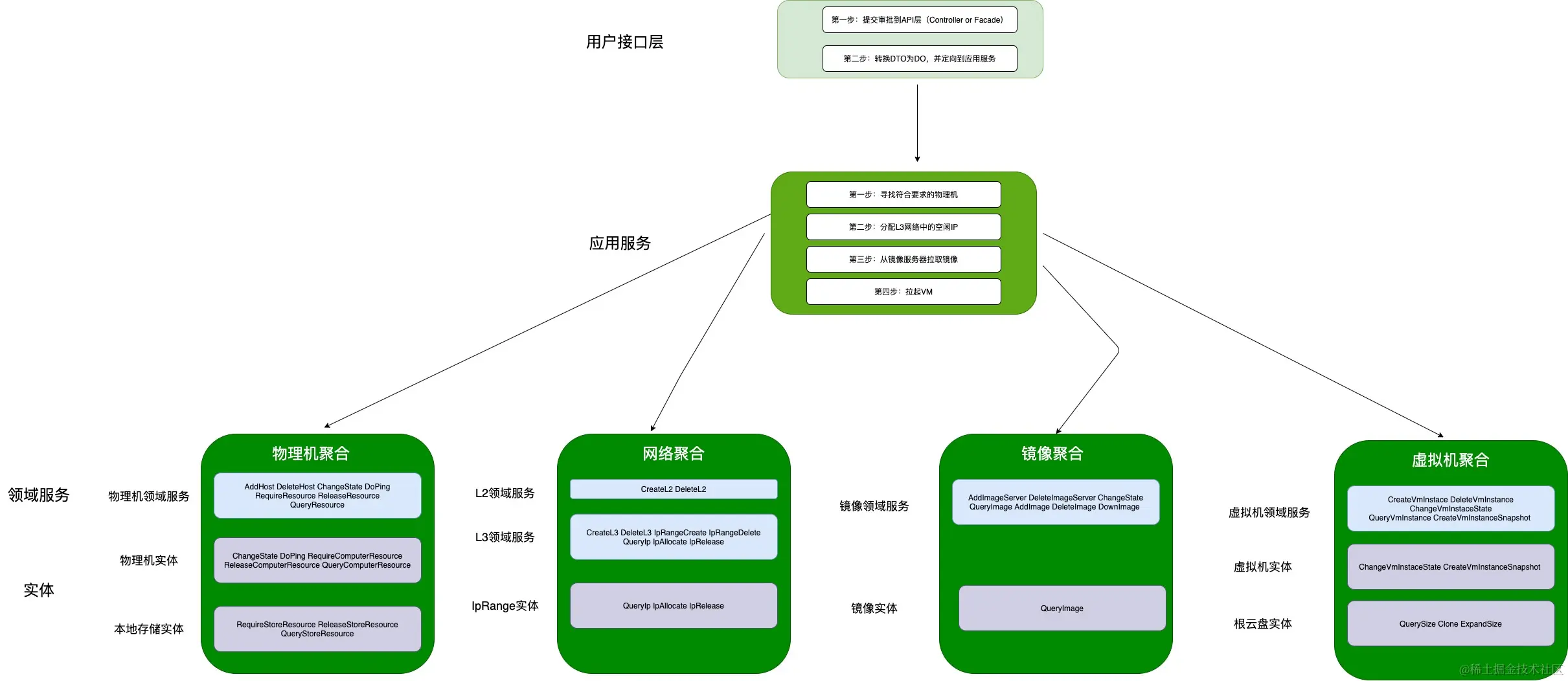 - 领域服务:VM服务、物理机服务、网络服务、镜像服务