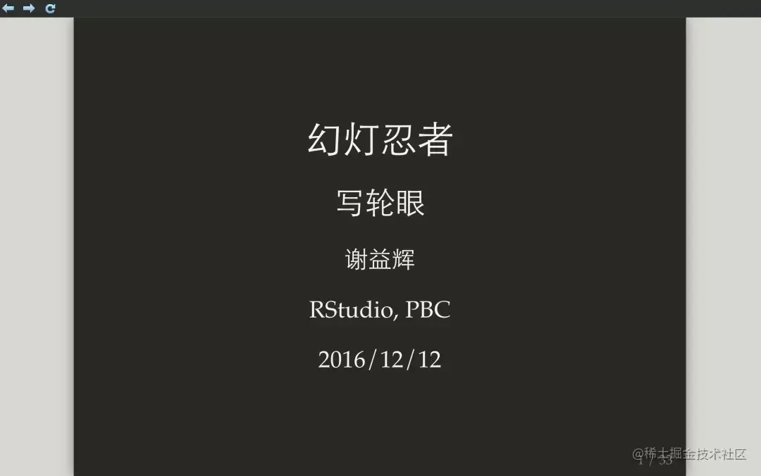 谢益辉写的xaringan包,可以创建幻灯片。个人认为ppt的很多功能,他都能实现,接下来将通过几次推送对这个包(中文名:写轮眼)进行详细讲解。官方教程说明给出了一些基本教程,这里我对其进行介绍。