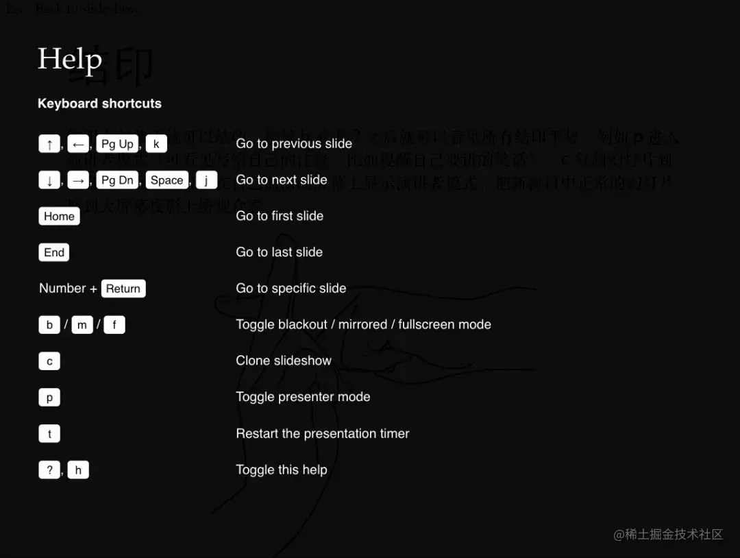 p进入演讲者模式(可看见写给自己的注释,比如提醒自己要讲的笑话),