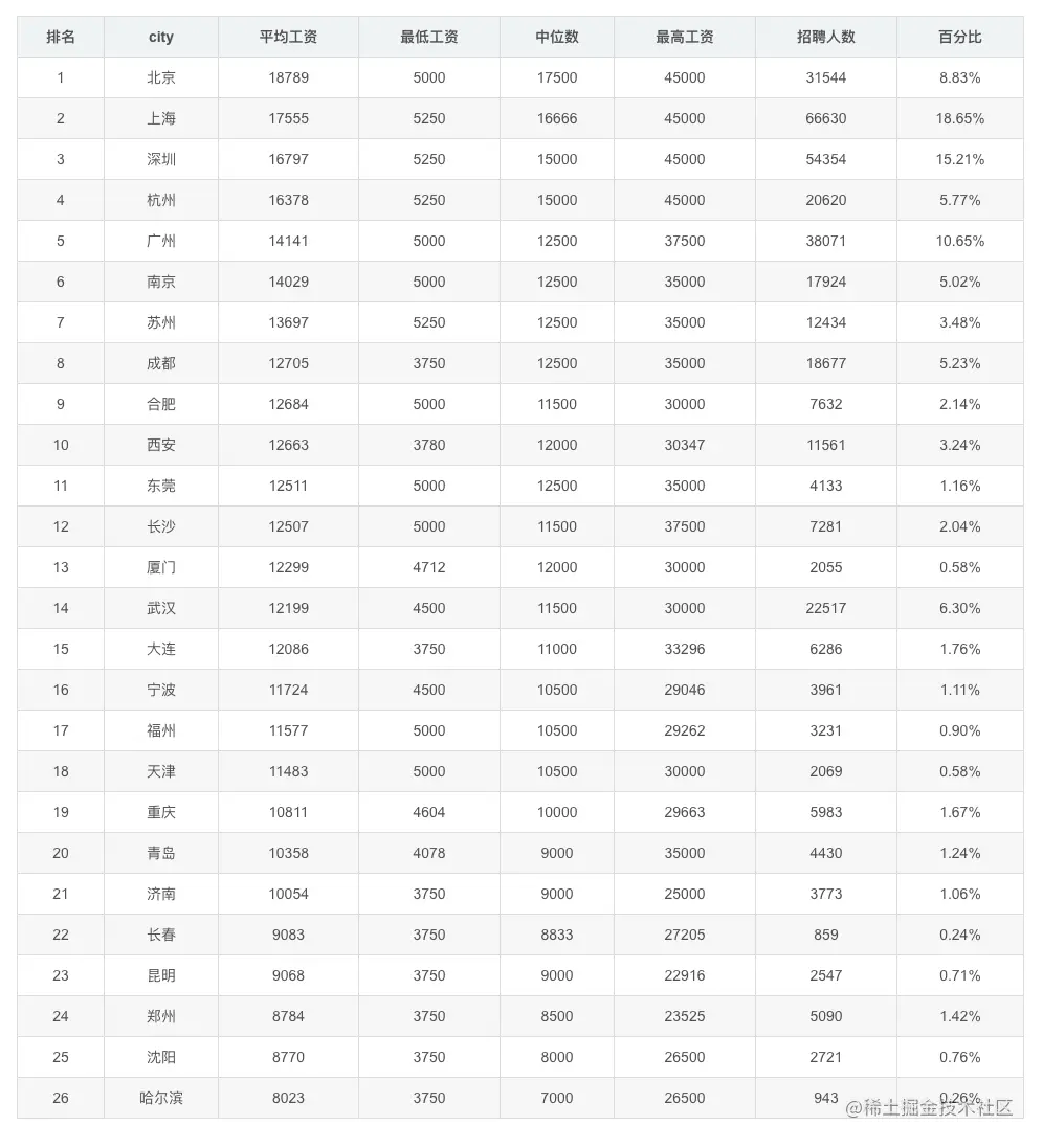 Java工程师的薪资水平同样优秀: