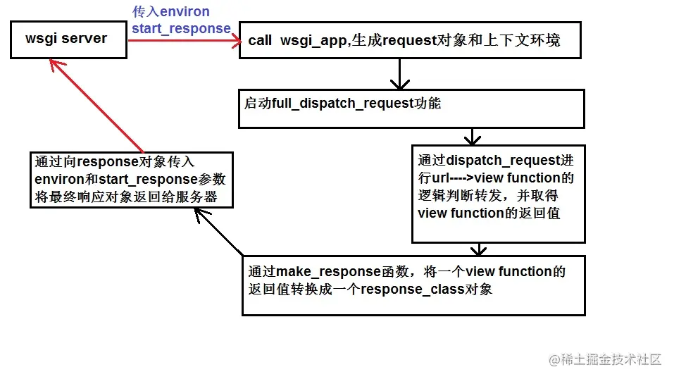 - 请求进入预处理(例如before_request),错误处理及请求转发到响应的过程(full_dispatch_request函数)